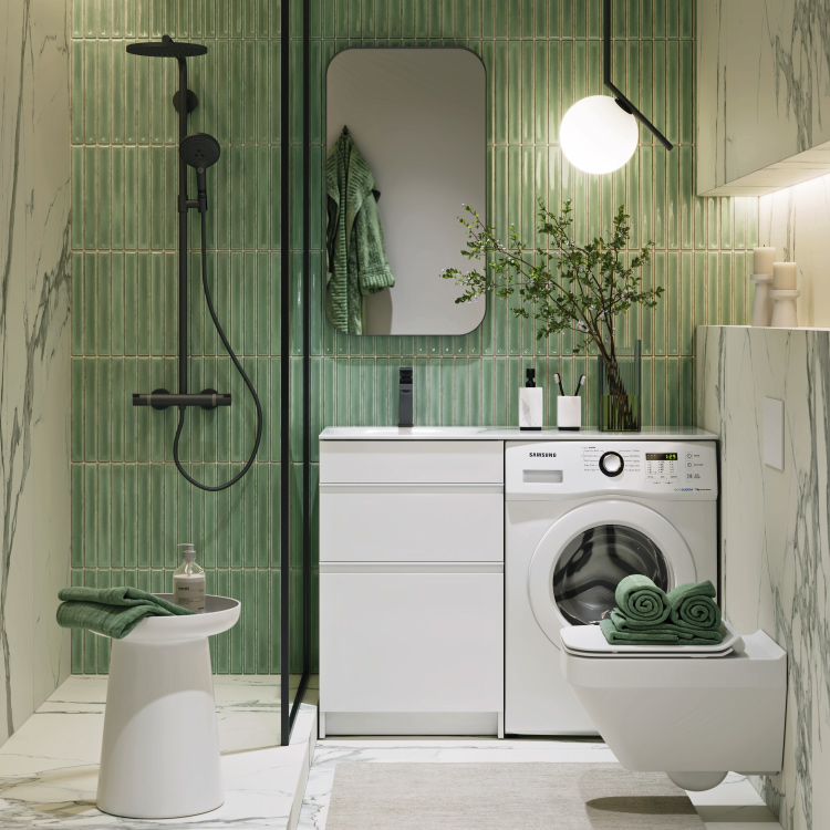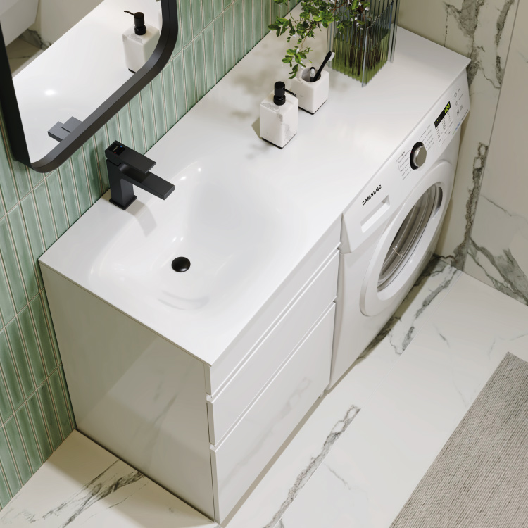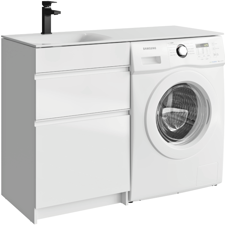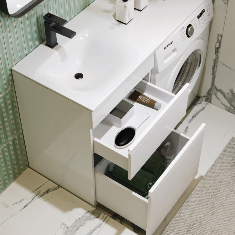 Напольная тумба AQWELLA под стиральную машину с двумя ящиками 115 см, белый с умывальником
