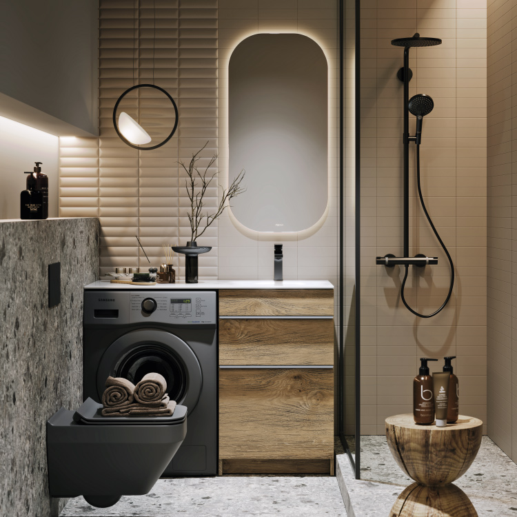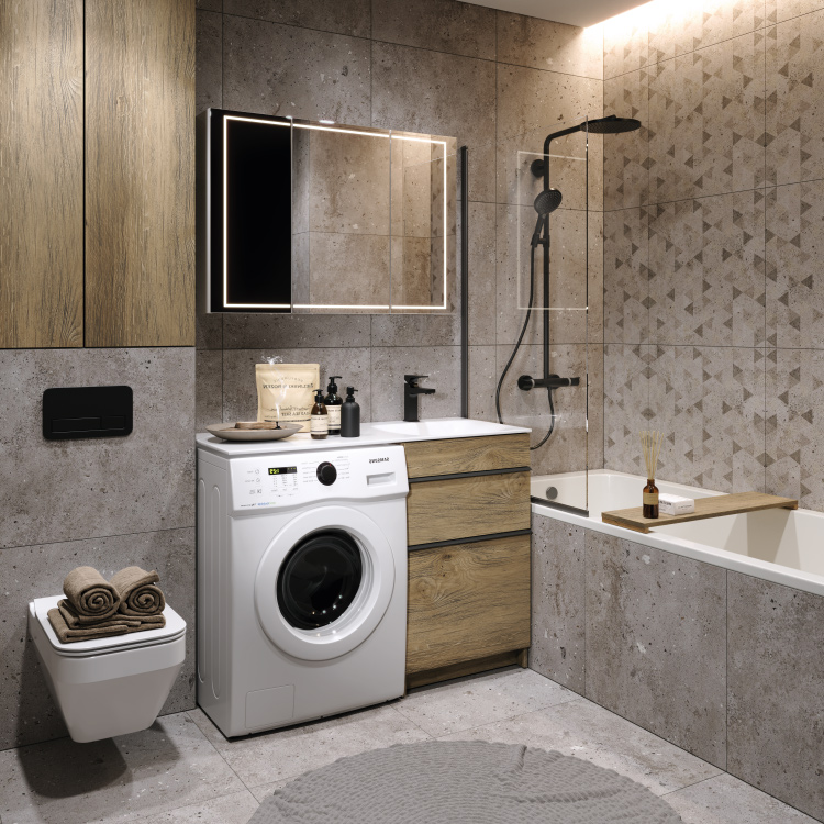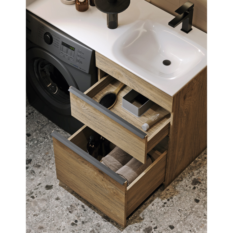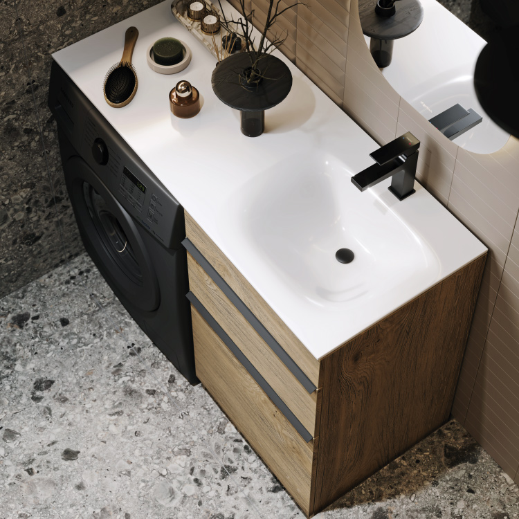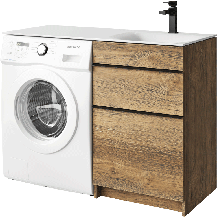 Напольная тумба AQWELLA под стиральную машину с двумя ящиками 115 см, дуб балтийский с умывальником