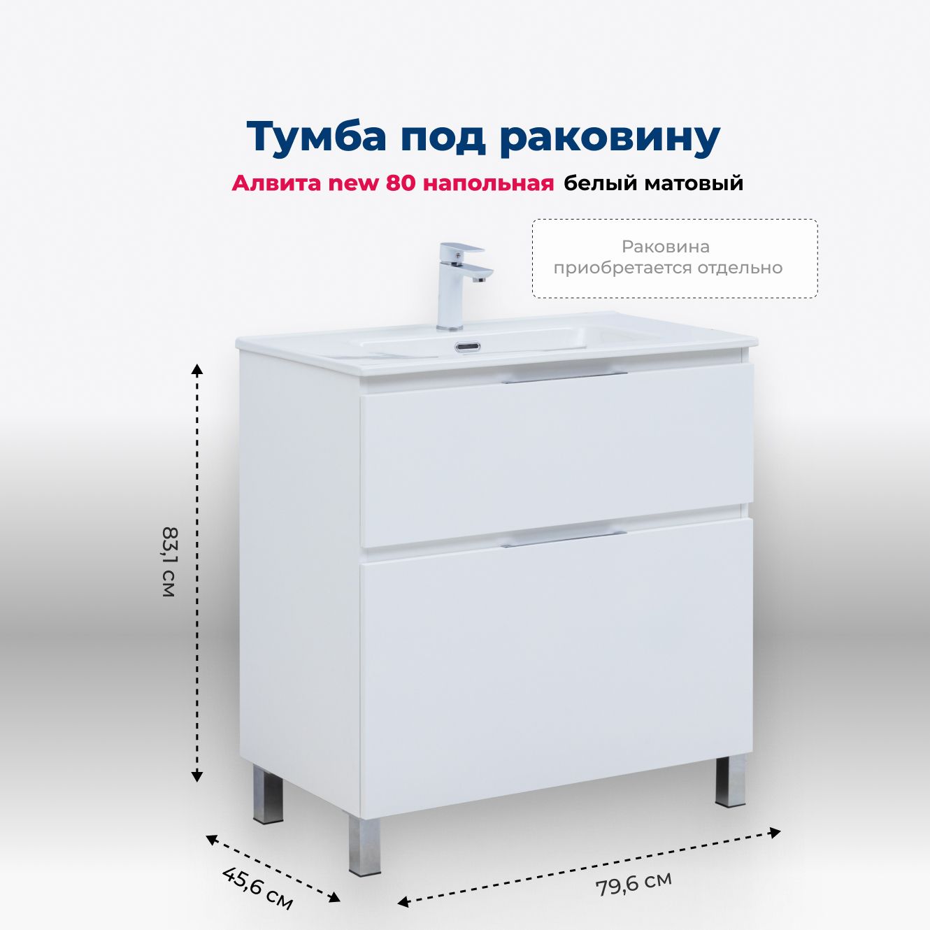Тумба под раковину Aquanet Алвита New 80 напольная, белый матовый