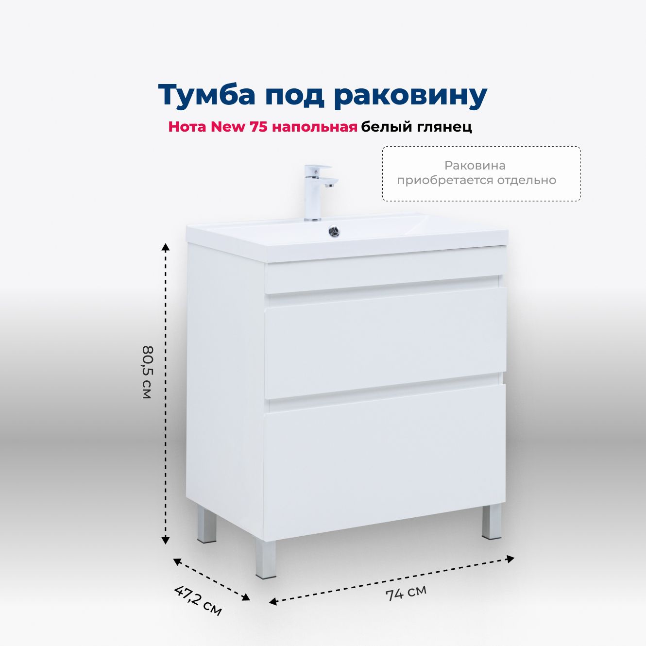 Тумба под раковину Aquanet Нота New 75 белый глянец