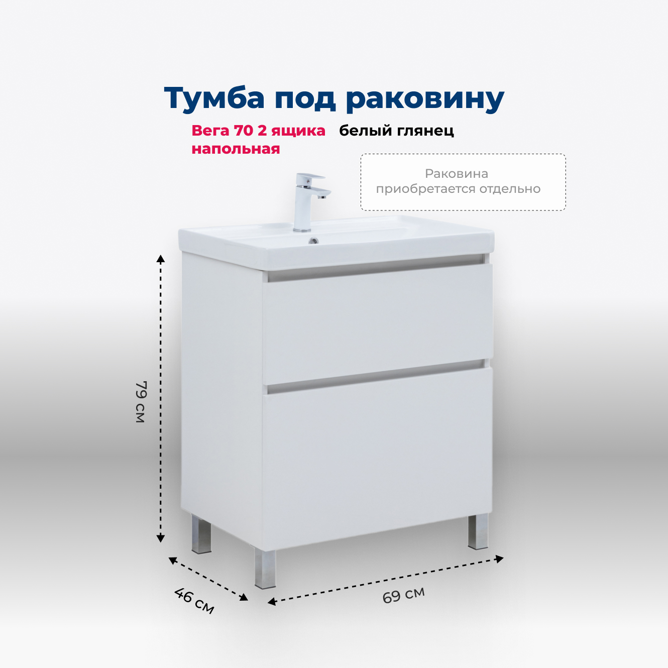 Тумба под раковину Aquanet Вега 70 напольная, белый глянец