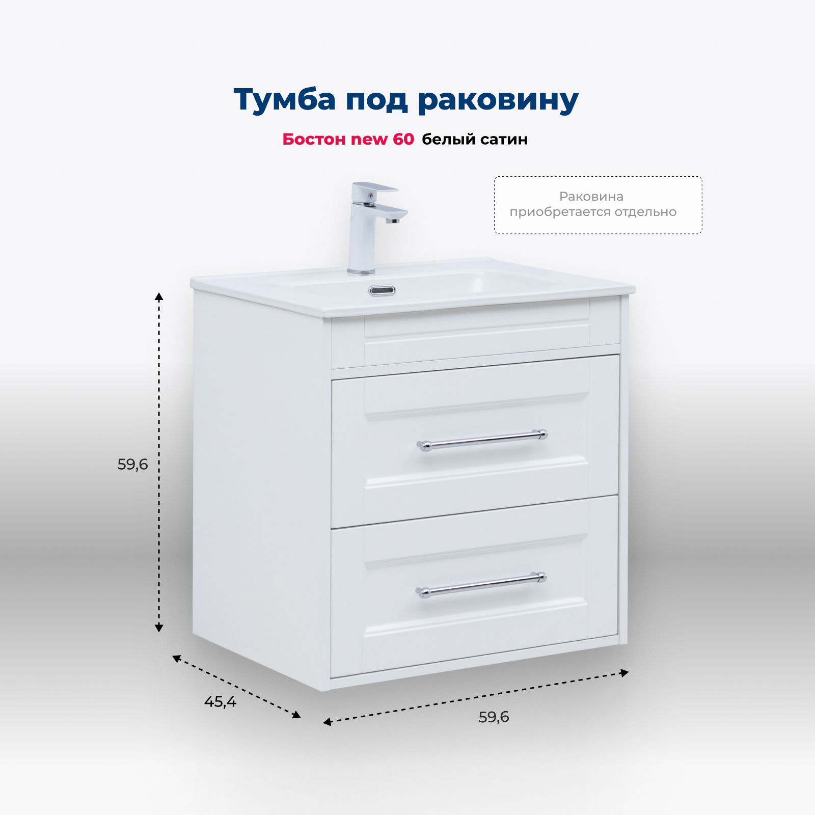 Тумба под раковину Aquanet Бостон new 60 белый сатин