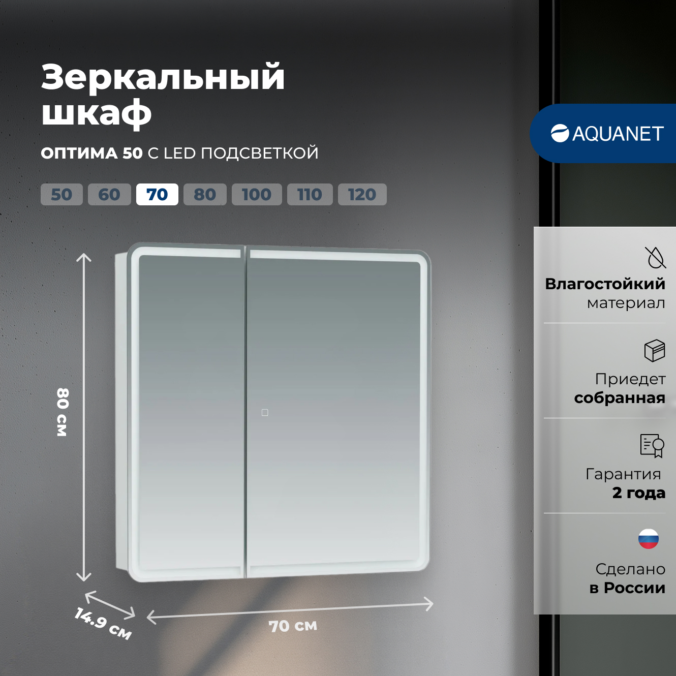 Зеркальный шкаф Aquanet Оптима 70 с LED подсветкой