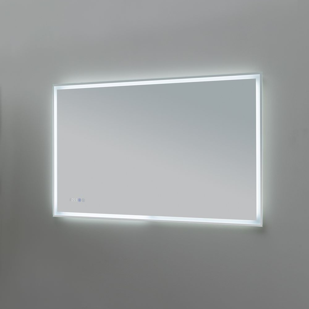Удобство использования достигается за и счет сенсорного управления. Больше не нужно возвращаться к выключателю на входе в помещение — достаточно коснуться поверхности, и зеркалом можно пользоваться. На фронтальной панели отображаются часы. Модель в равной степени подойдет как для ванной комнаты, так и для прихожей или обустройства косметического столика. Благодаря уникальной толщине 20 мм ее практически не видно на поверхности стены. Размеры — 1200х750 мм.