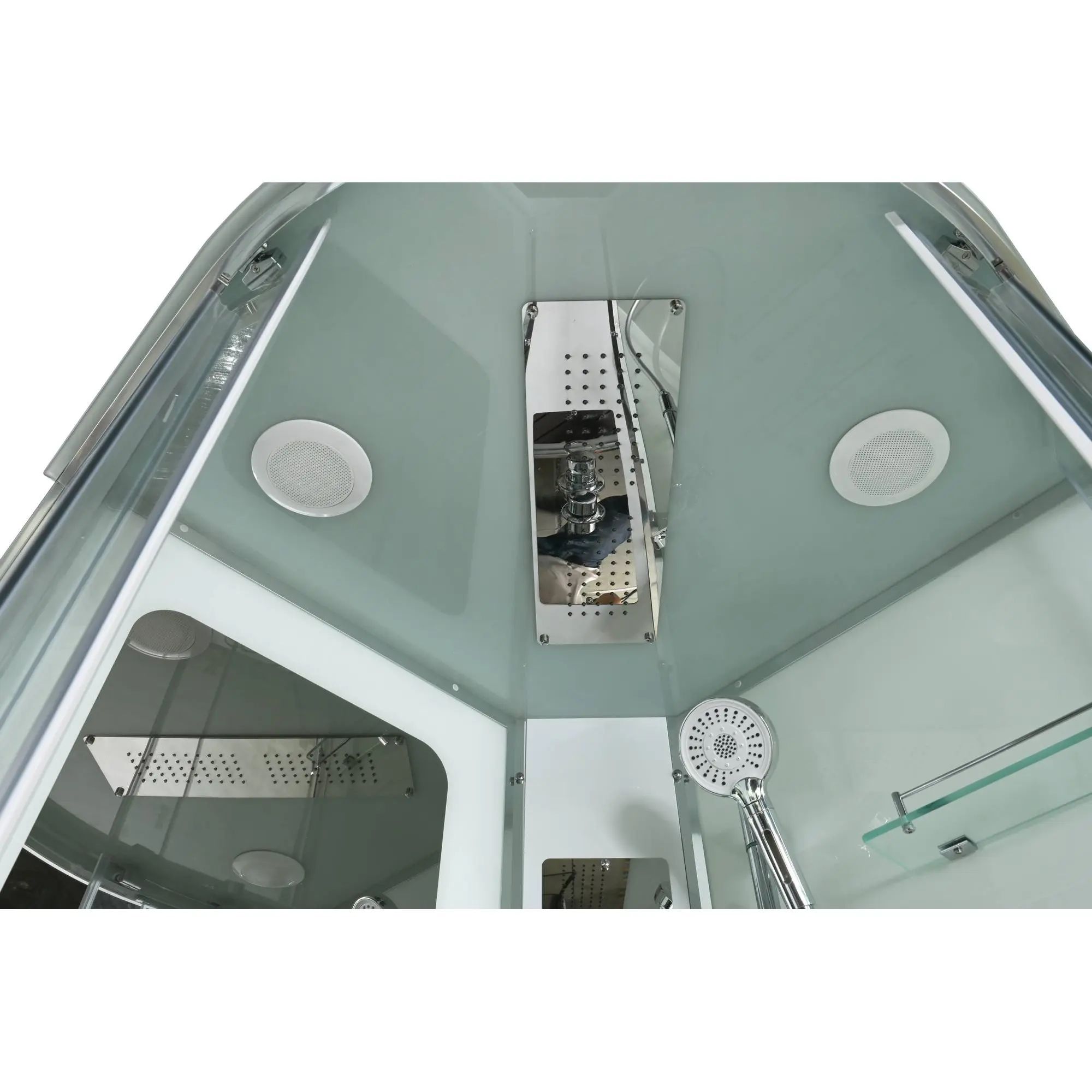 Стильная душевая кабина AvaCan сочетает в себе высокую функциональность, практичность и надежность. При изготовлении применяется безопасное закаленное стекло, надежно фиксируемое алюминиевым профилем. Профиль сделан из алюминия повышенной прочности. Сборка без силикона (увеличивает срок службы, защищает от протечек), внутренняя сборка (облегчает установку и ревизию; позволяет установить в ограниченном пространстве и обойтись без демонтажа других сантехнических приборов), смеситель резьбовой (без хомутов). Двойные металлические ролики дверей (распределение нагрузки на два ролика, увеличивают срок службы). Душевая штанга(позволяет регулировать по высоте ручную лейку), ручная арома-лейка с витамином С (картридж в комплекте,есть возможность замены или удаления картриджа), полочки(из стекла, с ограничителем), сифон с гидрозатвором.