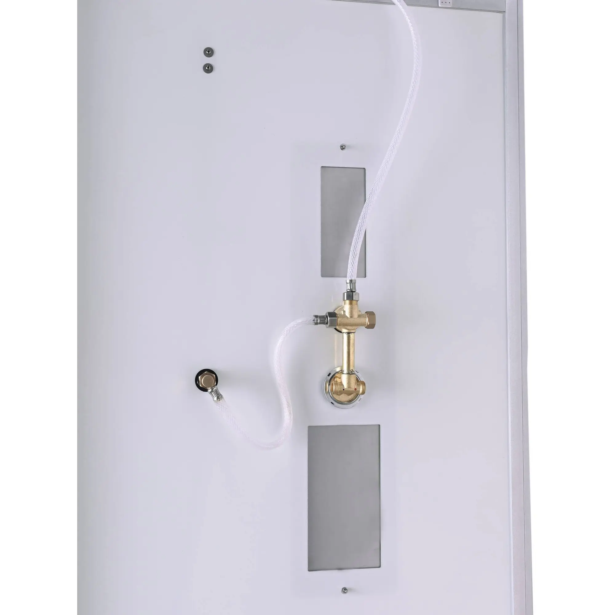 Стильная душевая кабина AvaCan D 5012R сочетает в себе высокую функциональность, практичность и надежность. При изготовлении применяется безопасное закаленное стекло толщиной 4 мм (матовое), надежно фиксируемое алюминиевым профилем. Сборка без силикона (увеличивает срок службы), внутренняя сборка (облегчает установку и ревизию, позволяет установить душевую кабину в ограниченном пространстве),смеситель резьбовой (без хомутов), съемный экран поддона (позволяет осуществлять ревизию сифона), цвет профиля матовый хром. Двойные металлические ролики дверей (увеличивают срок службы).В комплекте : душевая штанга, полочка, тропический (верхний) душ, арома-лейка с витамином С (картридж съемный).