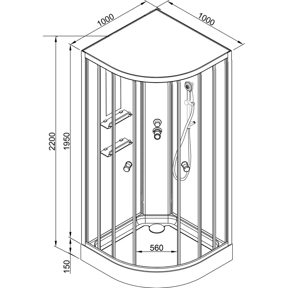 Стильная душевая кабина AvaCan EM 1510 N сочетает в себе высокую функциональность, практичность и надежность. Для изготовления применяют безопасное закаленное стекло толщиной 5 мм, надежно фиксируемое алюминиевым профилем. Цвет профиля белый. В комплекте зеркало, душевой гарнитур, переключатель режимов, смеситель, тропический (верхний) душ, деревянная вставка в поддон, полочки.