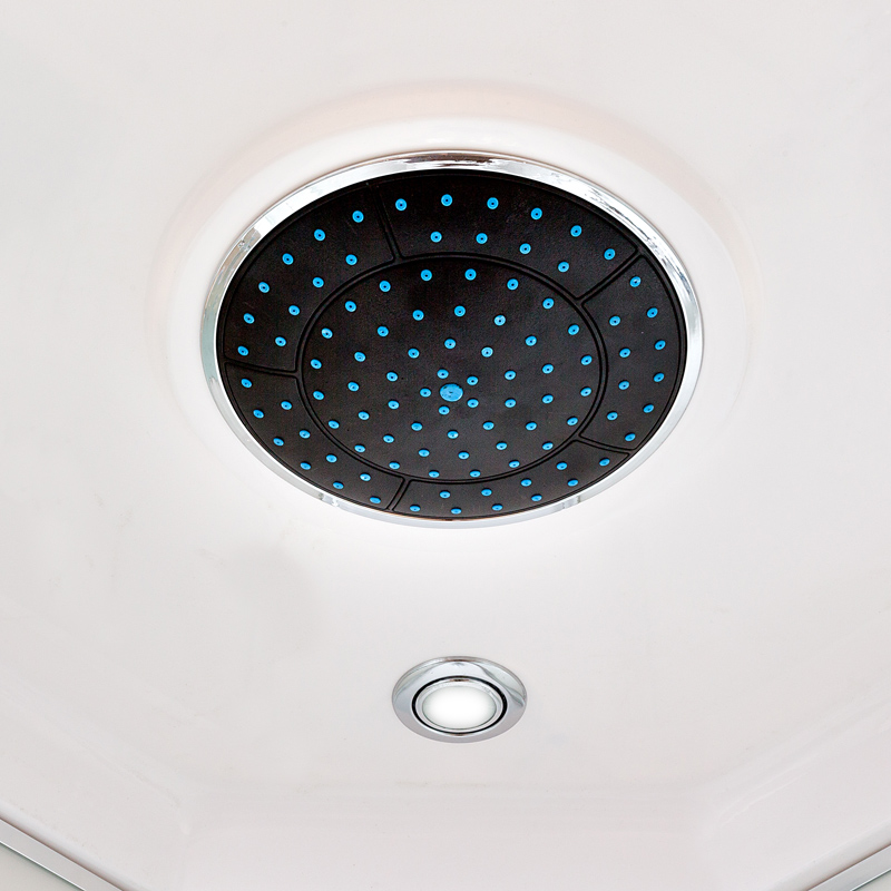 Стильная душевая кабина AvaCan EM 1510 с электрикой сочетает в себе высокую функциональность, практичность и надежность. Для изготовления применяют безопасное закаленное стекло толщиной 5 мм, надежно фиксируемое алюминиевым профилем. Цвет профиля хром. В комплекте зеркало, сенсорный пульт управления, душевой гарнитур, смеситель, тропический (верхний) душ, деревянная вставка в поддон, переключатель режимов, вентиляция, полочки, тропический (верхний) душ, радио.