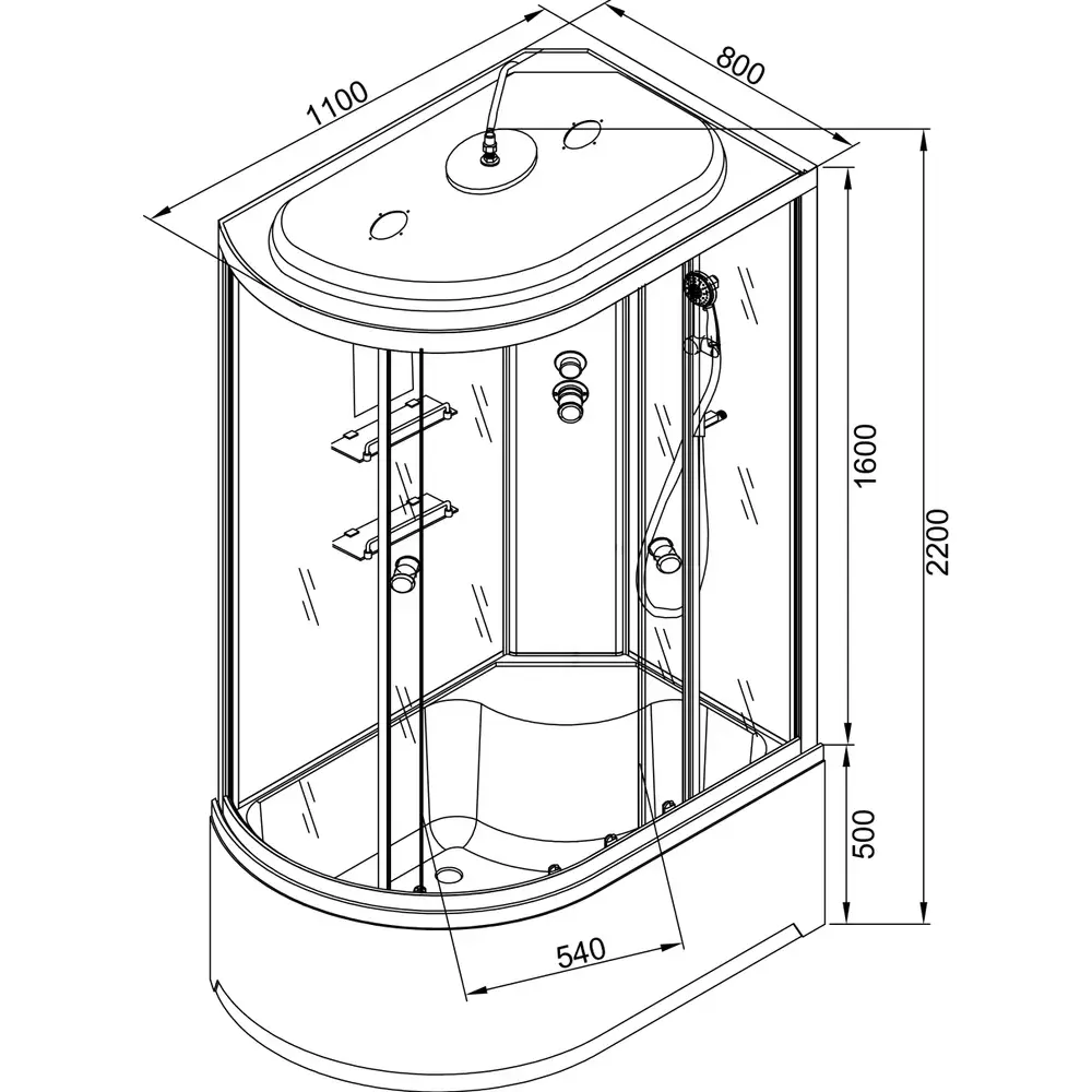 Стильная душевая кабина AvaCan EM 4511 R сочетает в себе высокую функциональность, практичность и надежность. Для изготовления применяют безопасное закаленное стекло толщиной 5 мм, надежно фиксируемое алюминиевым профилем. Цвет профиля хром. В комплекте зеркало, донный клапан (клик-клак), переключатель режимов, смеситель, тропический (верхний) душ, полочки, тропический (верхний) душ.