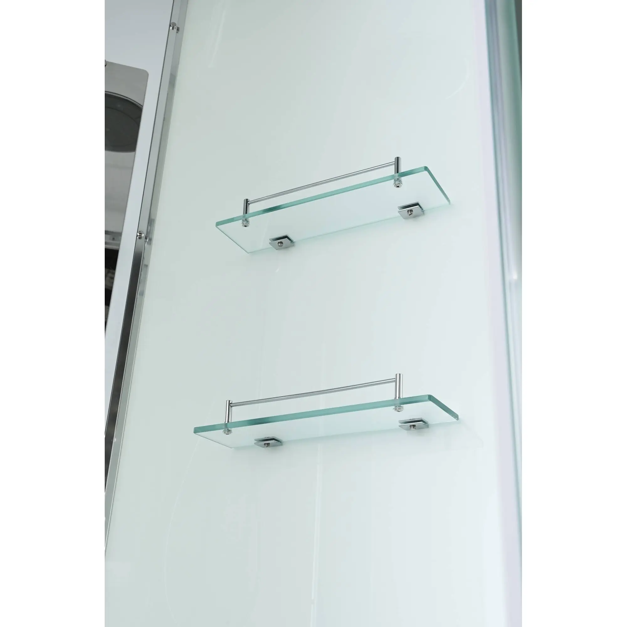Стильная душевая кабина AvaCan сочетает в себе высокую функциональность, практичность и надежность. При изготовлении применяется безопасное закаленное стекло, надежно фиксируемое алюминиевым профилем. Профиль сделан из алюминия повышенной прочности. Сборка без силикона (увеличивает срок службы, защищает от протечек), внутренняя сборка (облегчает установку и ревизию; позволяет установить в ограниченном пространстве и обойтись без демонтажа других сантехнических приборов), смеситель резьбовой (без хомутов). Съемный экран поддона (позволяет осуществлять подключение и ревизию сифона).Двойные металлические ролики дверей (распределение нагрузки на два ролика, увеличивают срок службы). Душевая штанга(позволяет регулировать по высоте ручную лейку), ручная арома-лейка с витамином С (картридж в комплекте,есть возможность замены или удаления картриджа), полочки(из стекла, с ограничителем), сифон с гидрозатвором.