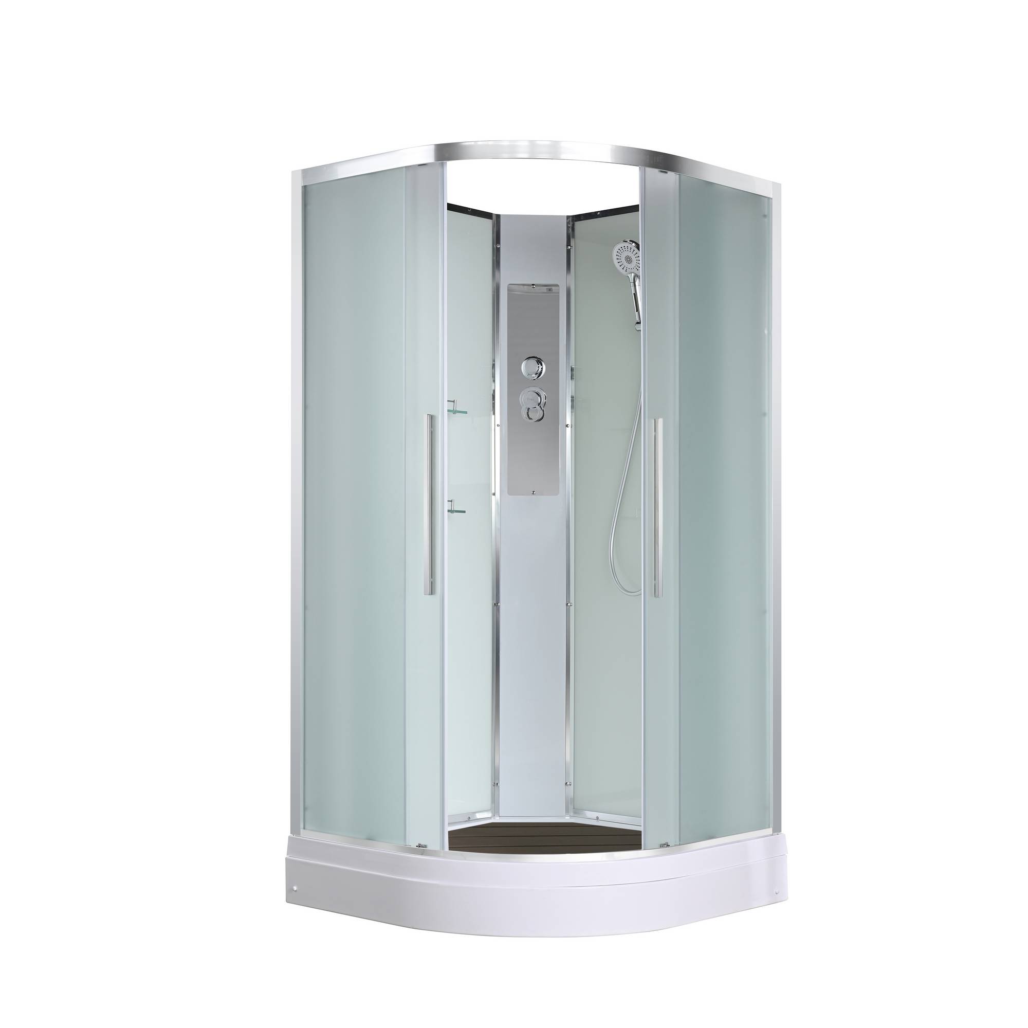 Стильная душевая кабина AvaCan EM2080N сочетает в себе высокую функциональность, практичность и надежность. При изготовлении применяется безопасное закаленное стекло толщиной 5 мм (матовое), надежно фиксируемое алюминиевым профилем. Сборка без силикона (увеличивает срок службы), внутренняя сборка(облегчает установку и ревизию; позволяет установить в ограниченном пространстве), смеситель резьбовой (без хомутов). Съемный экран поддона (позволяет осуществлять ревизию сифона). Цвет профиля хром. Двойные металлические ролики дверей (увеличивают срок службы).В комплекте : душевая штанга, две полочки , арома-лейка с витамином С (картридж съемный),полимерная вставка в поддон(имитация дерева),сифон, ручки дверей из нержавейки , двойные ролики .