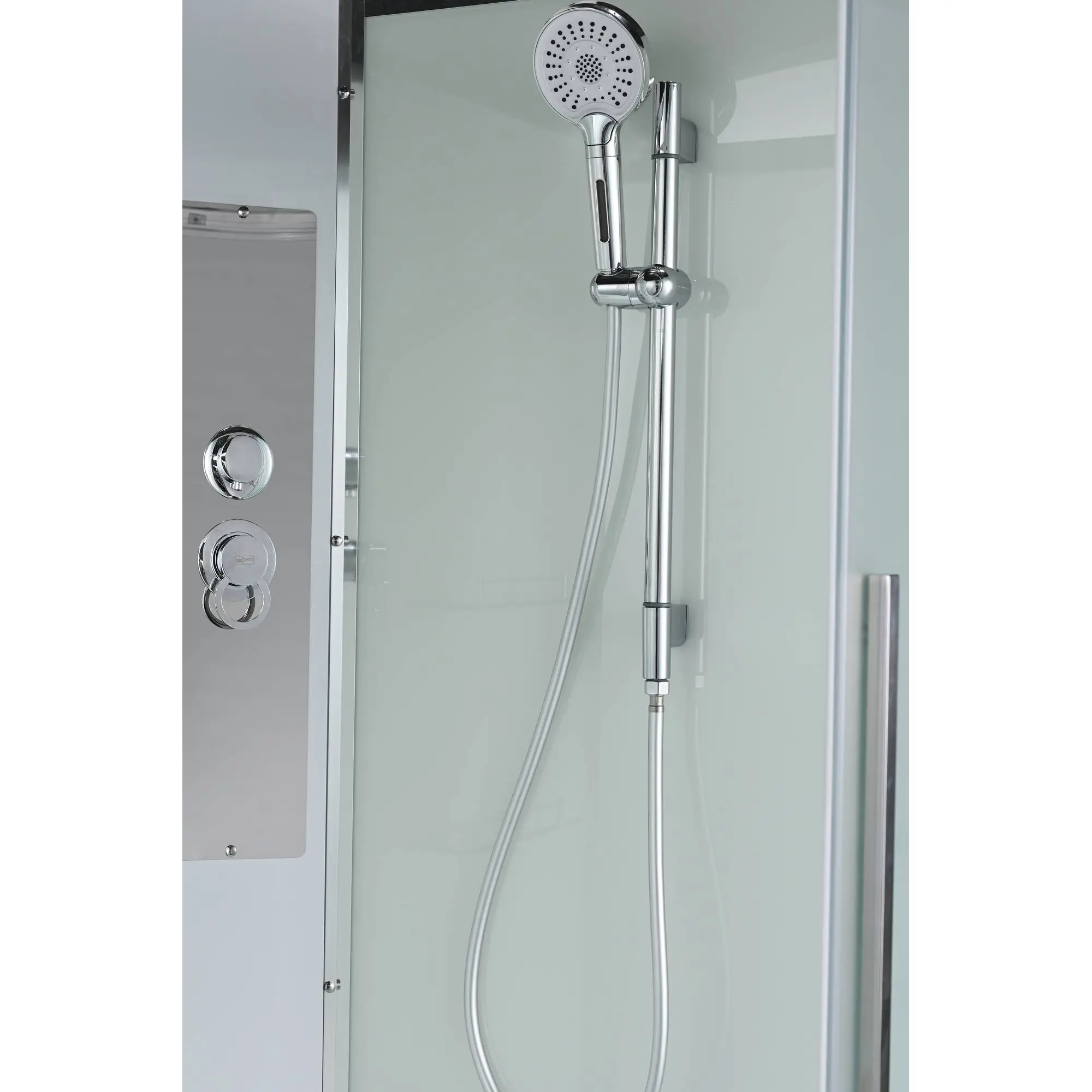 Стильная душевая кабина AvaCan сочетает в себе высокую функциональность, практичность и надежность. При изготовлении применяется безопасное закаленное стекло, надежно фиксируемое алюминиевым профилем. Профиль сделан из алюминия повышенной прочности. Сборка без силикона (увеличивает срок службы, защищает от протечек), внутренняя сборка (облегчает установку и ревизию; позволяет установить в ограниченном пространстве и обойтись без демонтажа других сантехнических приборов), смеситель резьбовой (без хомутов). Съемный экран поддона (позволяет осуществлять подключение и ревизию сифона).Двойные металлические ролики дверей (распределение нагрузки на два ролика, увеличивают срок службы). Душевая штанга(позволяет регулировать по высоте ручную лейку), ручная арома-лейка с витамином С (картридж в комплекте,есть возможность замены или удаления картриджа), полочки(из стекла, с ограничителем), сифон с гидрозатвором.