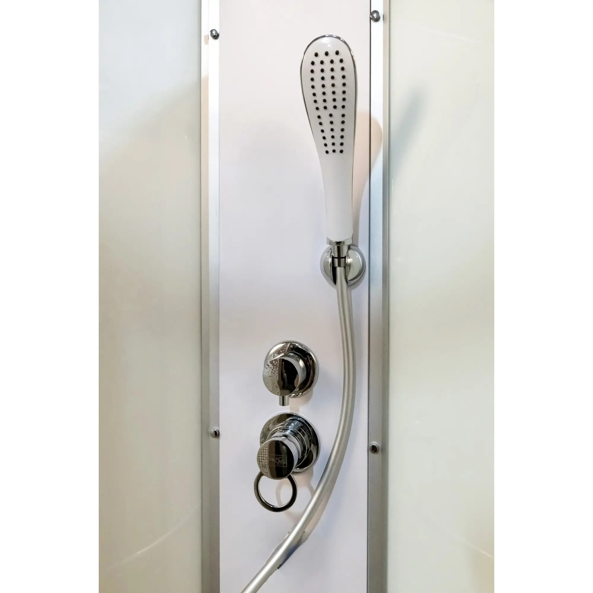 Стильная душевая кабина с внутренней сборкой AvaCan L980 сочетает в себе высокую функциональность, практичность и надежность. Для изготовления применяют безопасное закаленное стекло толщиной 4 мм, надежно фиксируемое алюминиевым профилем. Цвет профиля хром. В комплекте душевой гарнитур, сифон, смеситель, тропический (верхний) душ, душевой гарнитур,полка.