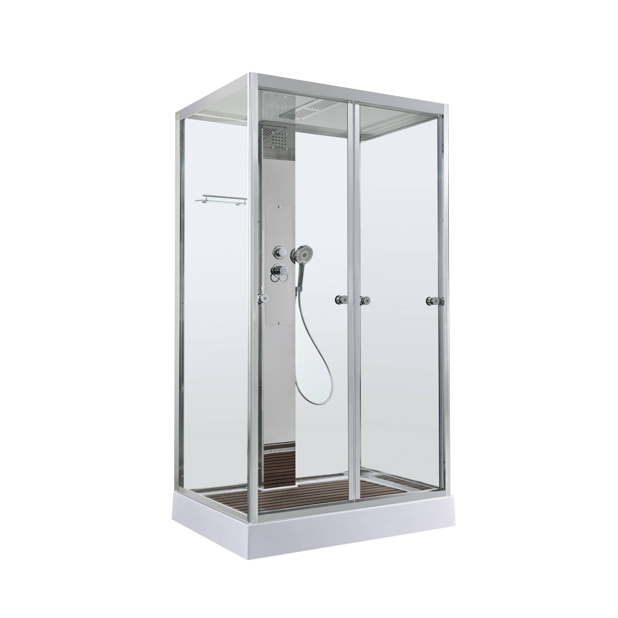 Стильная душевая кабина AvaCan сочетает в себе высокую функциональность, практичность и надежность. При изготовлении применяется безопасное закаленное стекло, надежно фиксируемое алюминиевым профилем. Профиль сделан из алюминия повышенной прочности. Сборка без силикона (увеличивает срок службы, защищает от протечек), внутренняя сборка (облегчает установку и ревизию; позволяет установить в ограниченном пространстве и обойтись без демонтажа других сантехнических приборов), смеситель резьбовой (без хомутов). Двойные металлические ролики дверей (распределение нагрузки на два ролика, увеличивают срок службы). Душевая штанга(позволяет регулировать по высоте ручную лейку), ручная арома-лейка с витамином С (картридж в комплекте,есть возможность замены или удаления картриджа), полочки(из стекла, с ограничителем), сифон с гидрозатвором.