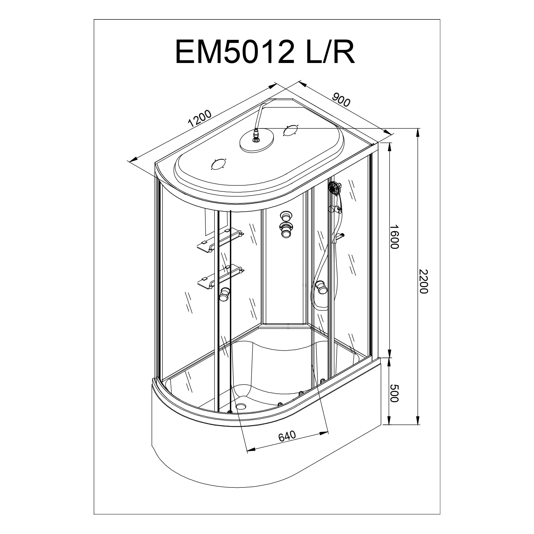 Стильная душевая кабина с внутренней сборкой AvaCan EM5012 R LED сочетает в себе высокую функциональность, практичность и надежность. Для изготовления применяют безопасное закаленное стекло толщиной 5 мм, надежно фиксируемое алюминиевым профилем. Цвет профиля хром. В комплекте зеркало, переключатель режимов, смеситель, тропический (верхний) душ, полочки, гидромассажные форсунки, тропический (верхний) душ.