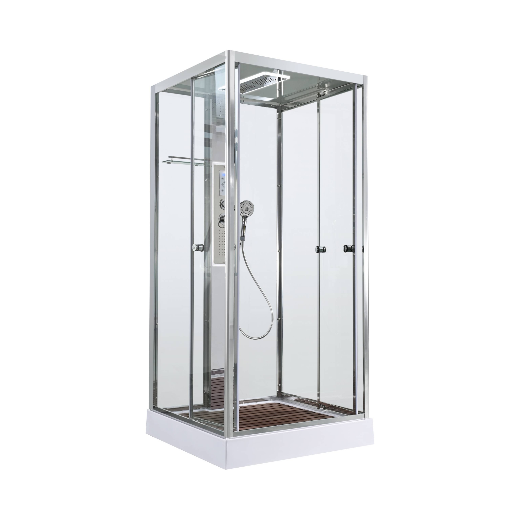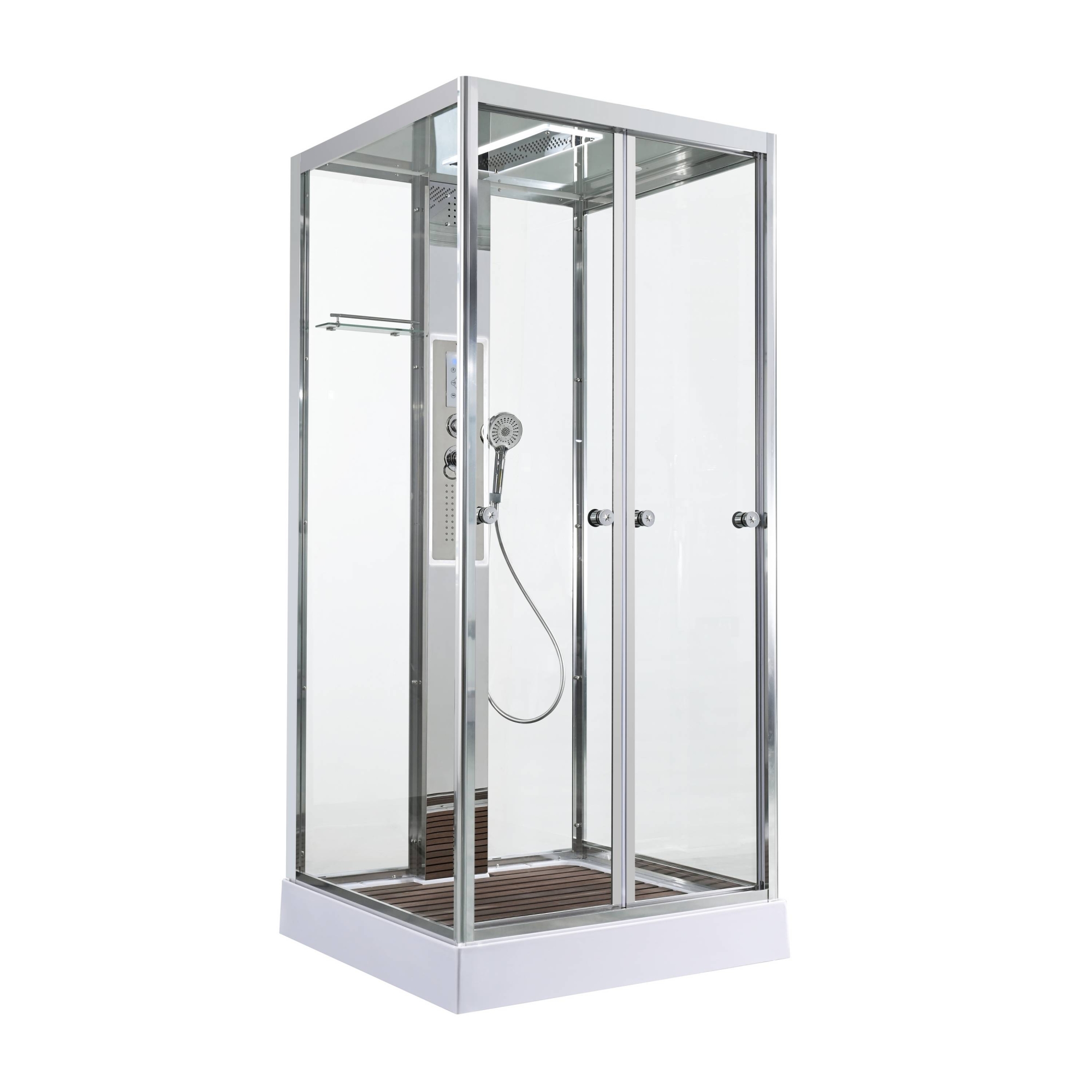 Стильная душевая кабина AvaCan сочетает в себе высокую функциональность, практичность и надежность. При изготовлении применяется безопасное закаленное стекло, надежно фиксируемое алюминиевым профилем.Профиль сделан из алюминия повышенной прочности. Сборка без силикона (увеличивает срок службы, защищает от протечек), внутренняя сборка (облегчает установку и ревизию; позволяет установить в ограниченном пространстве и обойтись без демонтажа других сантехнических приборов), смеситель резьбовой (без хомутов).Двойные металлические ролики дверей (распределение нагрузки на два ролика, увеличивают срок службы). Душевая штанга(позволяет регулировать по высоте ручную лейку), ручная арома-лейка с витамином С (картридж в комплекте,есть возможность замены или удаления картриджа), полочки(из стекла, с ограничителем), сифон с гидрозатвором, сенсорный пульт управления с функциями: блютуз, LED подсветка, радио, вытяжка, гидромассаж спины, тропический (верхний) душ.