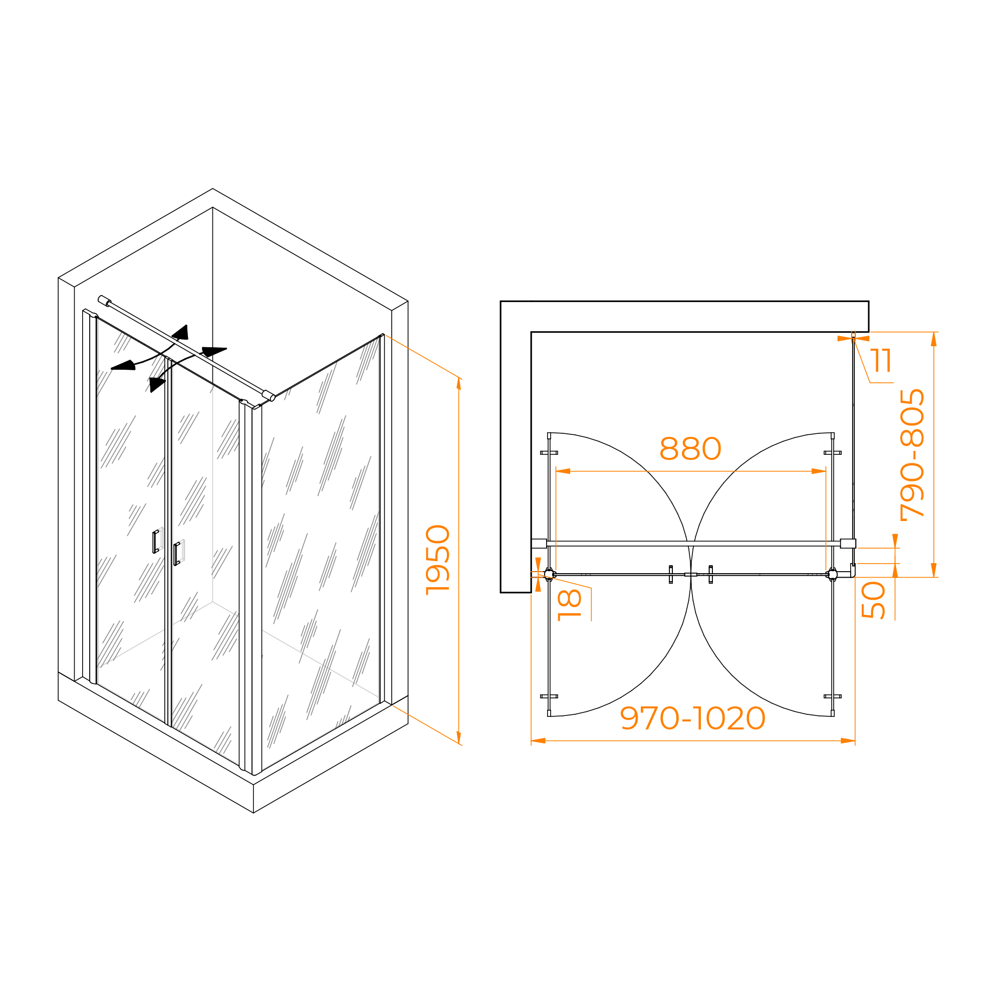 Душевой уголок RGW PA-144B (PA-104B+Z-050-2B+O-104B)