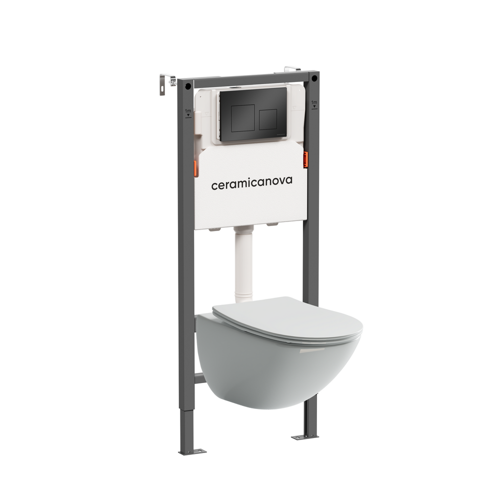 Комплект Подвесной унитаз CERAMICANOVA Mono Rimless + Система инсталляции Balance кнопка Square, черный матовый