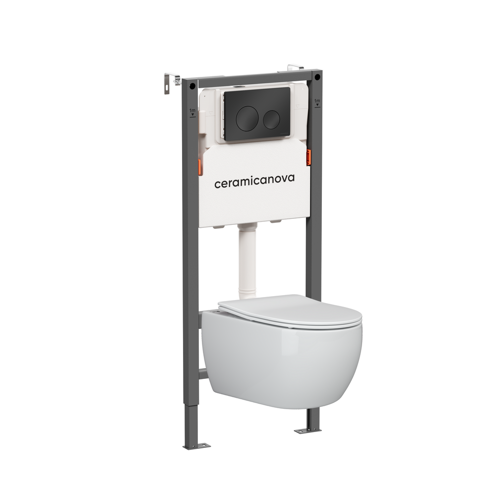 Комплект Подвесной унитаз CERAMICANOVA Play Rimless + Система инсталляции Balance кнопка Circle, черный матовый