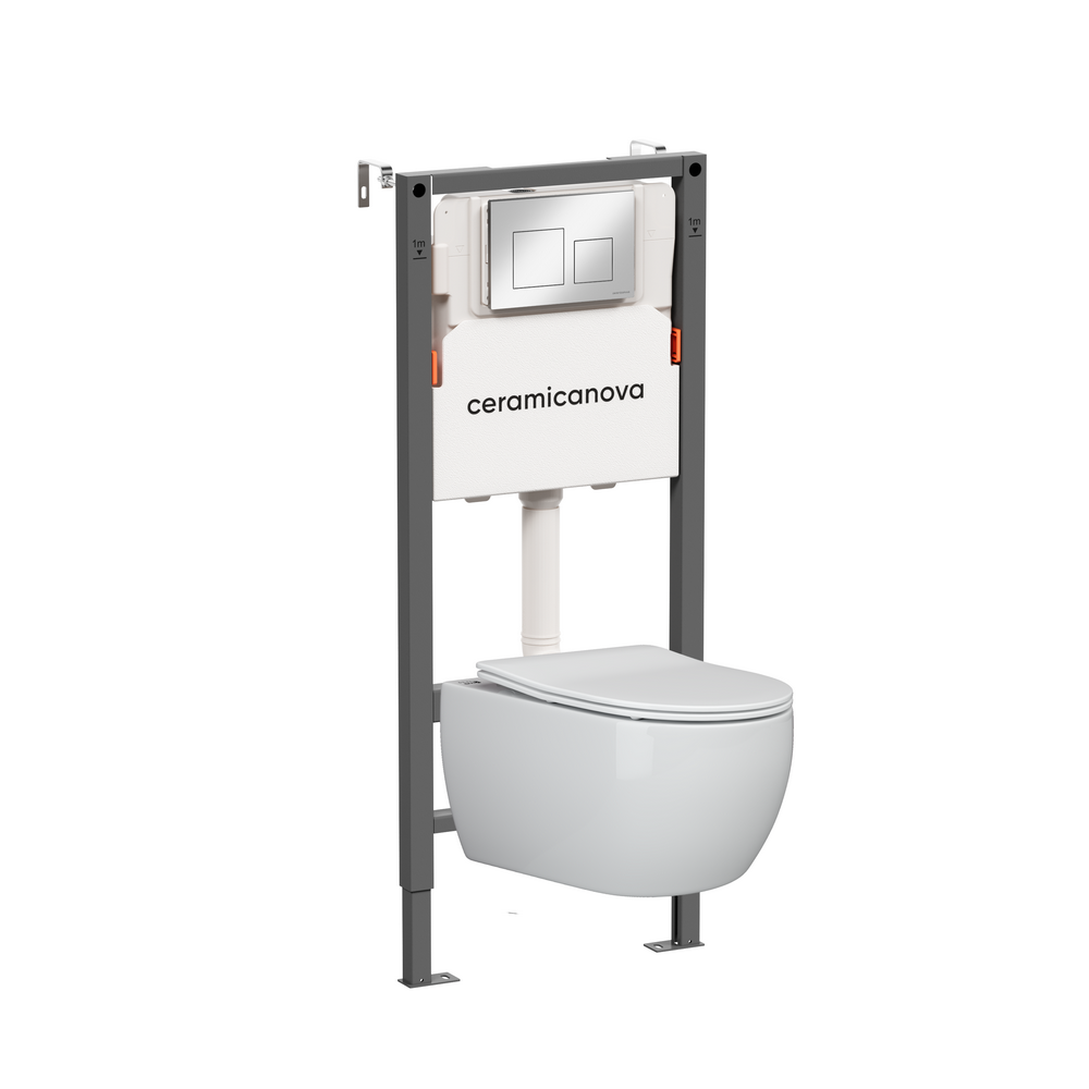 Комплект Подвесной унитаз CERAMICANOVA Play Rimless + Система инсталляции Balance кнопка Square, хром глянцевый