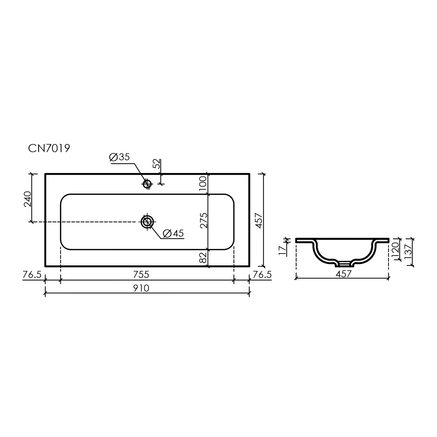 Раковина накладная мебельная CERAMICANOVA Grace прямоугольная 910x457x137 мм с отверстием под смеситель, белый