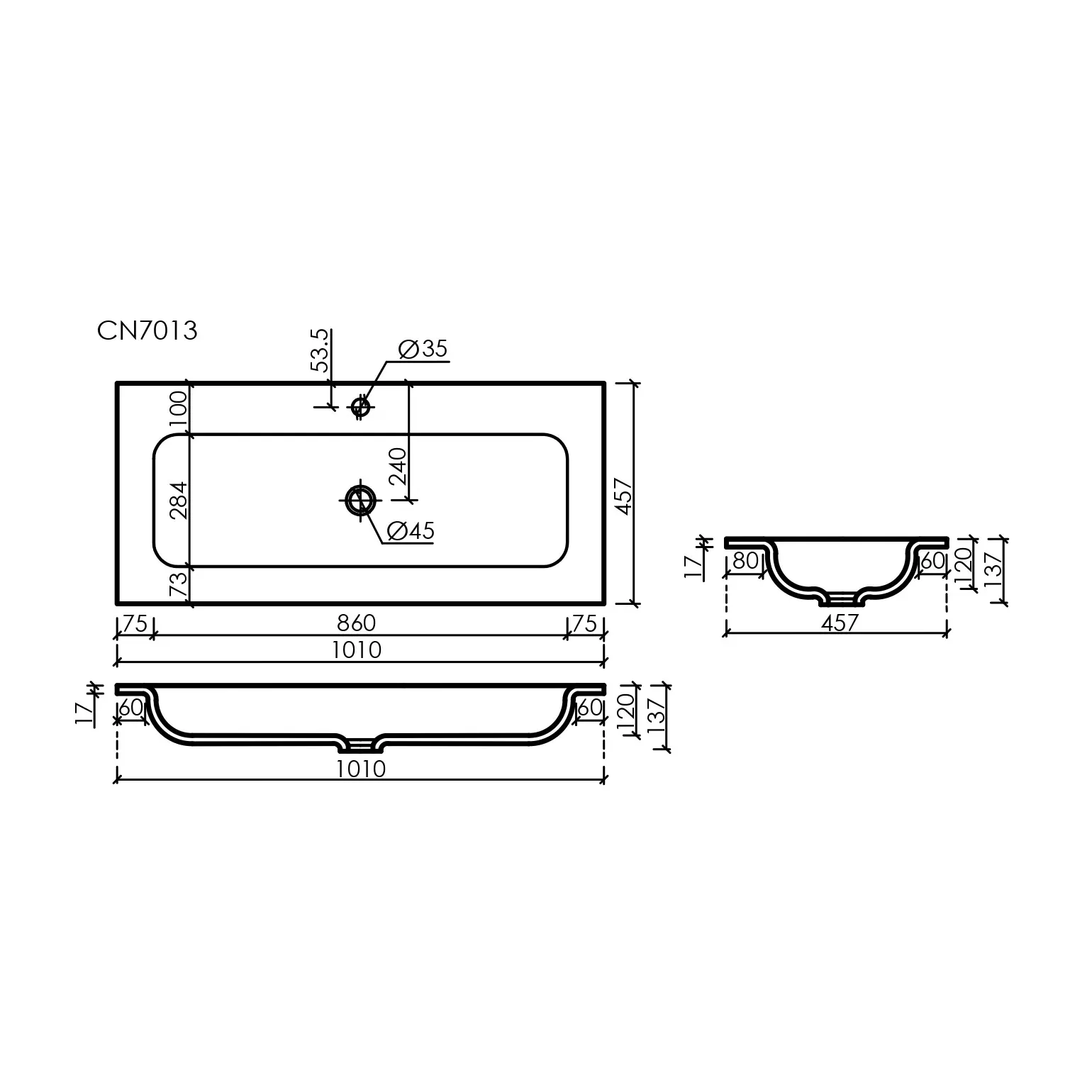 Раковина накладная мебельная CERAMICANOVA Grace прямоугольная с отверстием под смеситель 1010x457x137 мм, черный матовый