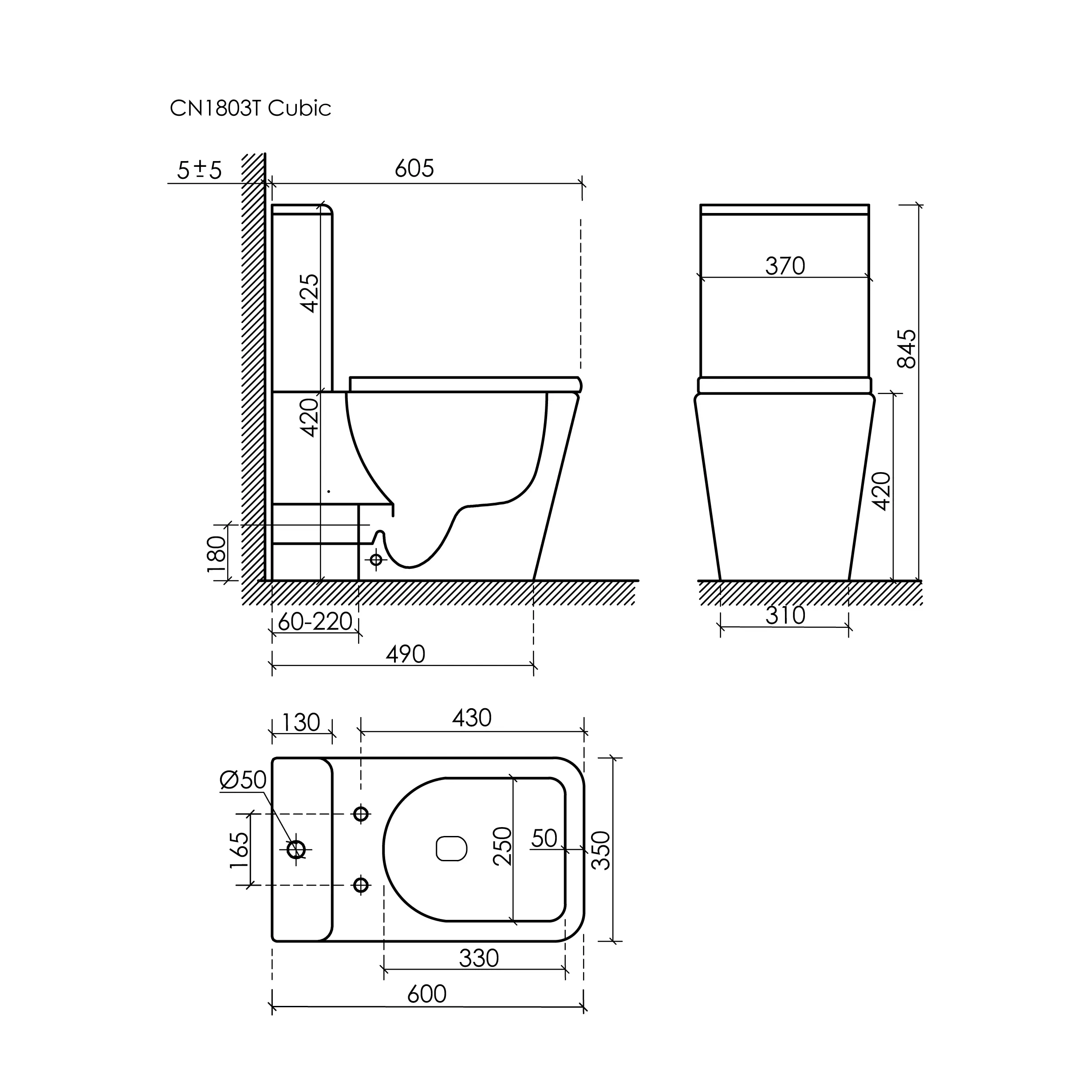 Напольный приставной унитаз CERAMICANOVA Cubic, белый