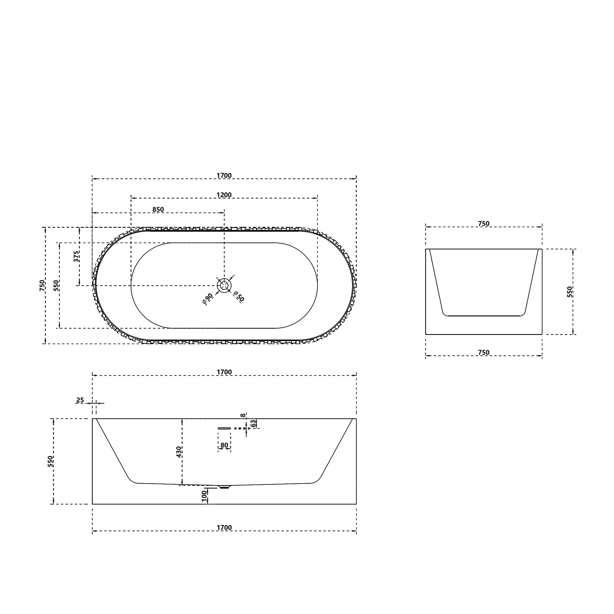 Ванна из искусственного камня ABBER Stein AS9653 белая матовая